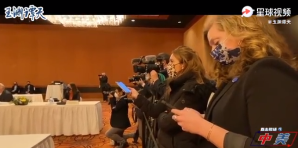 王毅也做完开场陈述后,中美双方的第一轮交锋结束,此时现场记者应该离开——