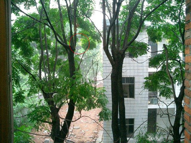 卡片机直拍,红圈中是树上开的黄花