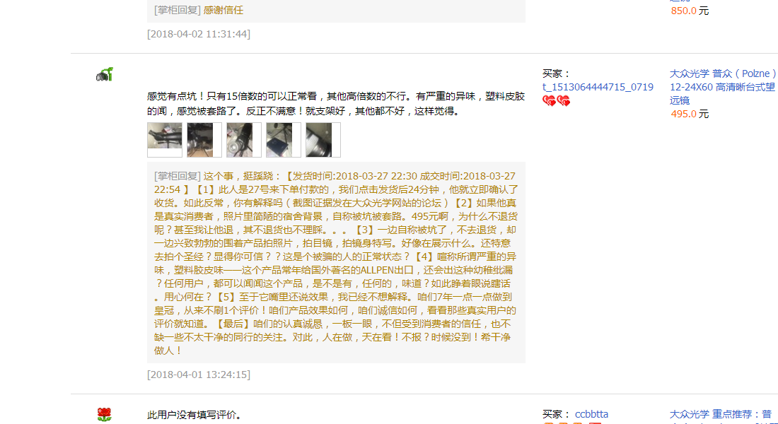 对这类东西咱们不妥协,不交涉,不会姑息它们用金钱换差评,所以结果也自然:咱们这儿会留下这些不干净的人的脏的东西(但这一个差评有点特殊,应该是商家搞的,要的就是给咱们一个差评),但咱们要给咱们的用户,经常在一起交流的用户,一个解释。